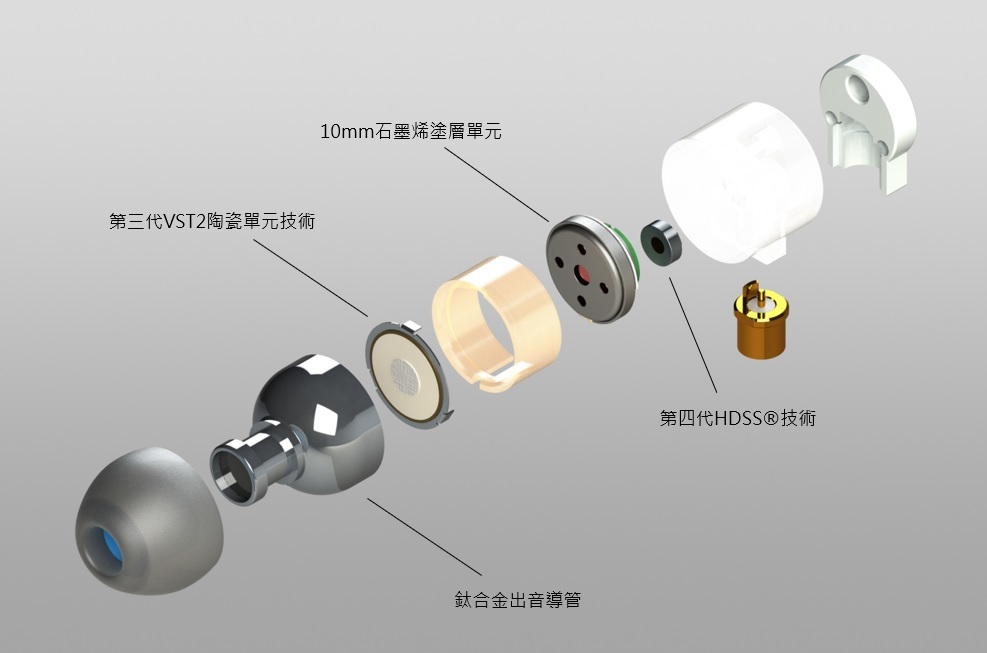 InTime在PZT壓電陶瓷材料分層分面有很豐富的經驗,並融入第三代VST2單元技術,令聲音可以超出一般可聽範圍的超高頻範圍、靈敏度進一步提高,泛音更豐富自然。同時繼續使用TBI Audio System LLC專利的第四代HDSS技術。HDSS 技術可以提供更順滑的聲音及更寬闊的音場,腔體產生的聲音不會影響低音單元振膜。如果欠缺HDSS技術,聲流可能會變得過於有序,令高音失真,難以把清晰、清脆的聲音結合。