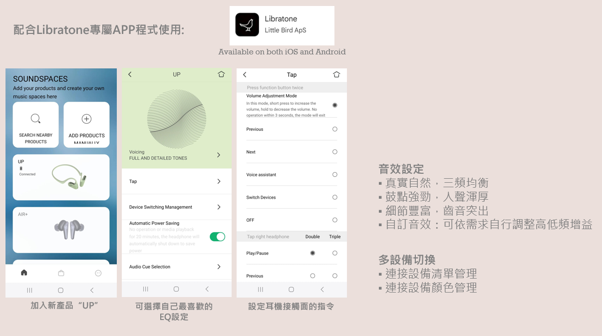 聲音音量充足,即使在嘈雜環境下仍能清晰收聽音樂及語音