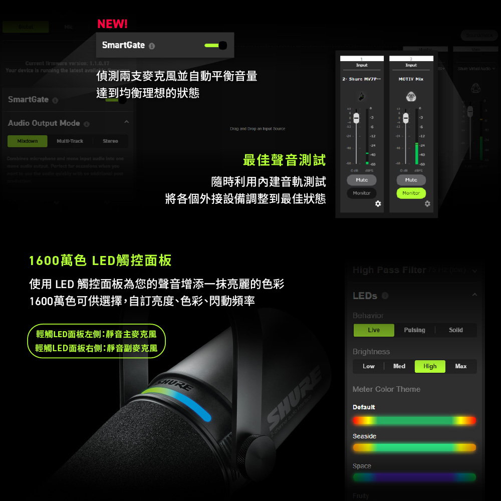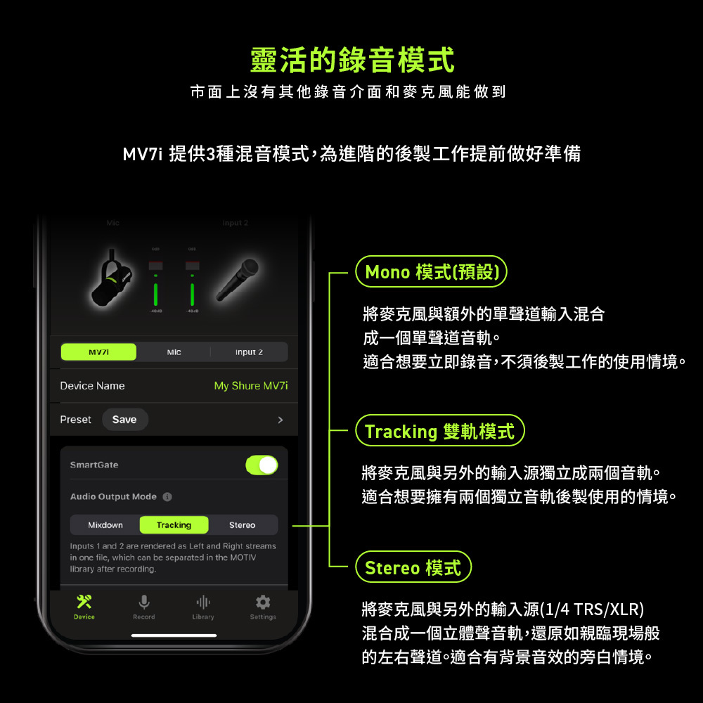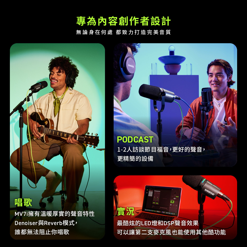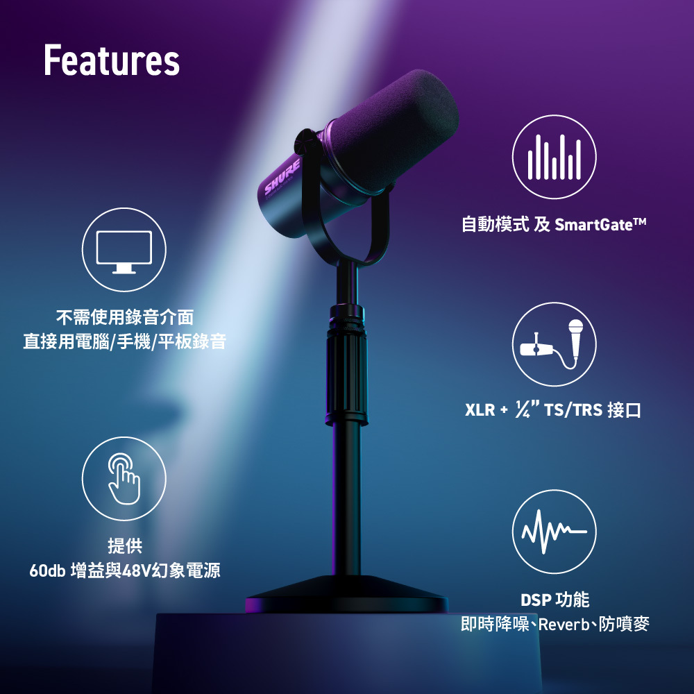 利用Shure MV7i智慧麥克風和音訊接口,邁入錄音新時代。這款首創的整合式音訊介面的USB麥克風,簡化了在電腦、平板和智慧型手機上的雙通道錄音設定。透過複合 XLR 和 ¼” 輸入連接任何 XLR 麥克風或樂器,您將不再需要訊號路徑中的外部音訊介面。使用 MOTIV 應用程式輕鬆管理錄音。透過先進的 DSP 功能享受廣播級音質。光滑的全金屬設計和可調節的支架,使其成為追求簡潔性和專業級性能的創作者的理想選擇。